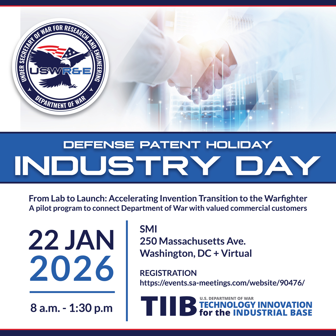 The Office of the Under Secretary of War for Research and Engineering (OUSW (R&E)) is hosting an industry day on January 22, 2026, to kick-off a pilot program that will provide no-fee commercial evaluation licenses (CEL) for specially curated DoW laboratory patents. A CEL is a special agreement allowing the licensee the right to assess the technical, market, and business potential of a patent along with associated scale-up challenges.